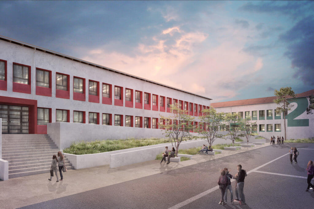 Σχέδιο για βελτίωση της θερμικής απόδοσης των κτιριακών κελυφών, σύστημα γεωθερμικής αντλίας θερμότητας με κάθετες γεωτρήσεις και Φωτοβολταϊκά Συστήματα σε συγκρότημα σχολικών κτιρίων πέντε κτιρίων στην οδό Κλεάνθους, στη Τούμπα, Θεσσαλονίκη. Το συγκρότημα αποτελείται από πέντε κτίρια με συνολική επιφάνεια 8.000 m².